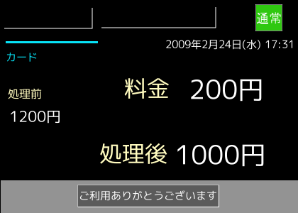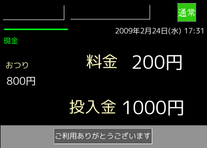 ドライブレコーダー情報&新料金箱情報 この記事のコメント欄へ進む この記事のトラックバック欄へ進むここから記事の本文です。 NH-223、NS-128にドライブレコーダが搭載されていた。なお、同車は野並営業所所属につき新型料金箱置き換え対象である。 新型料金箱で、釣銭を払いだす時は、釣銭口に照明が点灯する仕組みになっている。 新型料金箱の画面例(自作)は別ページにて紹介をしているのでごらんください。 画面を見れば何の画面がわかるだろうで説明は省略。とりあえずalt要素に入れるだけ。 なお、あくまでもこちらの調査で確認した範囲での掲載ですので、間違っていて損害をこうむっても一切責任は負いません。ご了承ください。特に1日乗車券の画面は間違っている可能性が高いです。PR ここから記事のフッターです。 2009/02/25 (Wed) 未選択 Trackback() Comment(0)